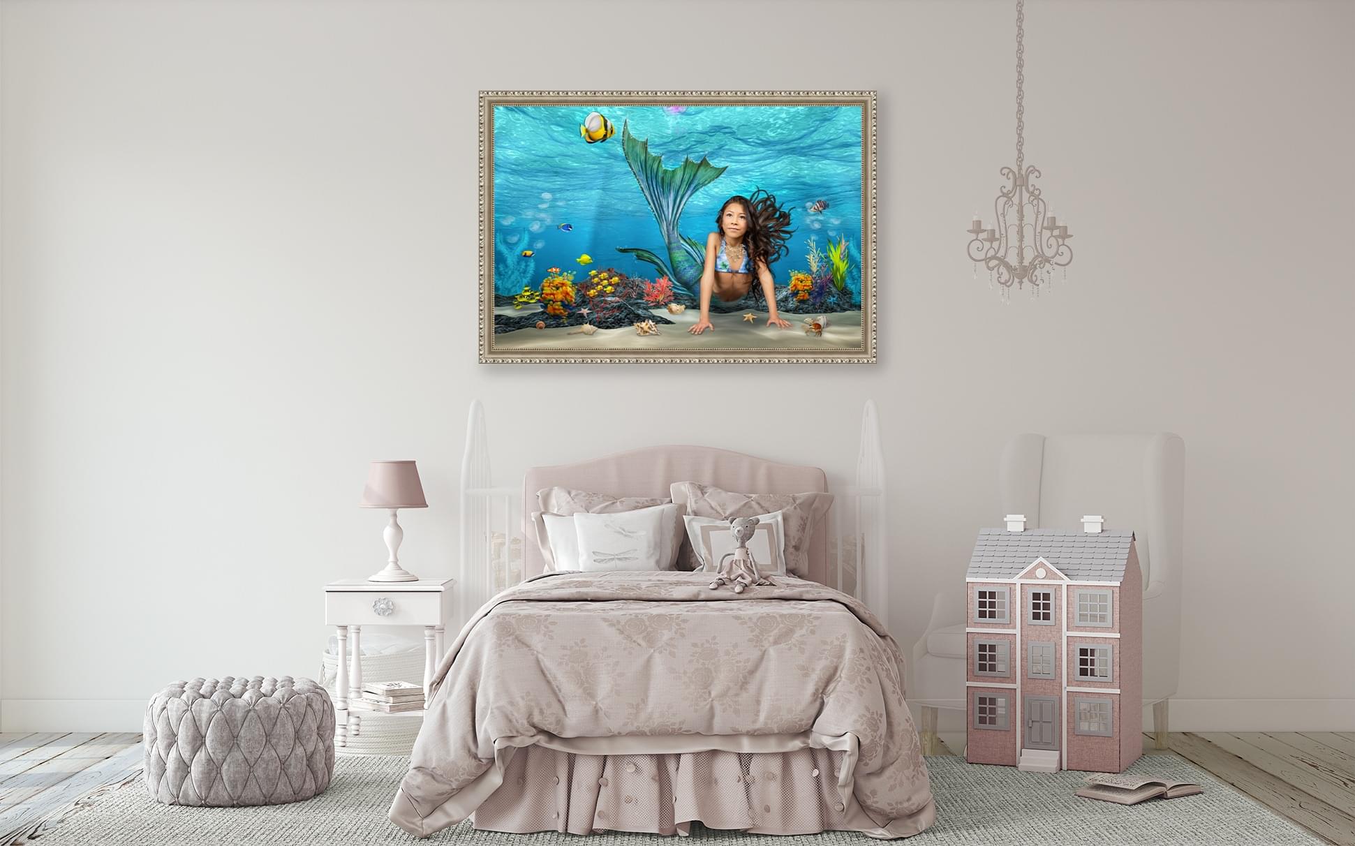 Children love to play pretend and dream themselves into their own little fantasy world. No matter if they'd love to be a fairy, princess, superhero, or mermaid, we can make their dreams come true. Surprise them with a stunning fine art wall portrait for their room or any other area in your home. They will be so proud!